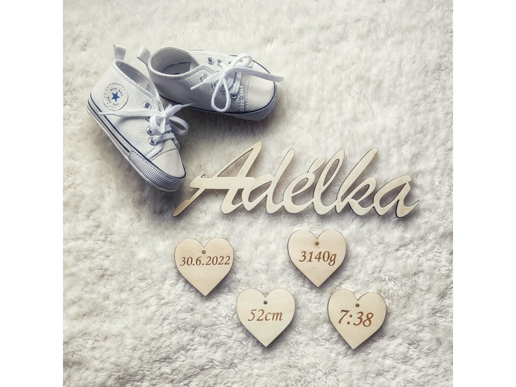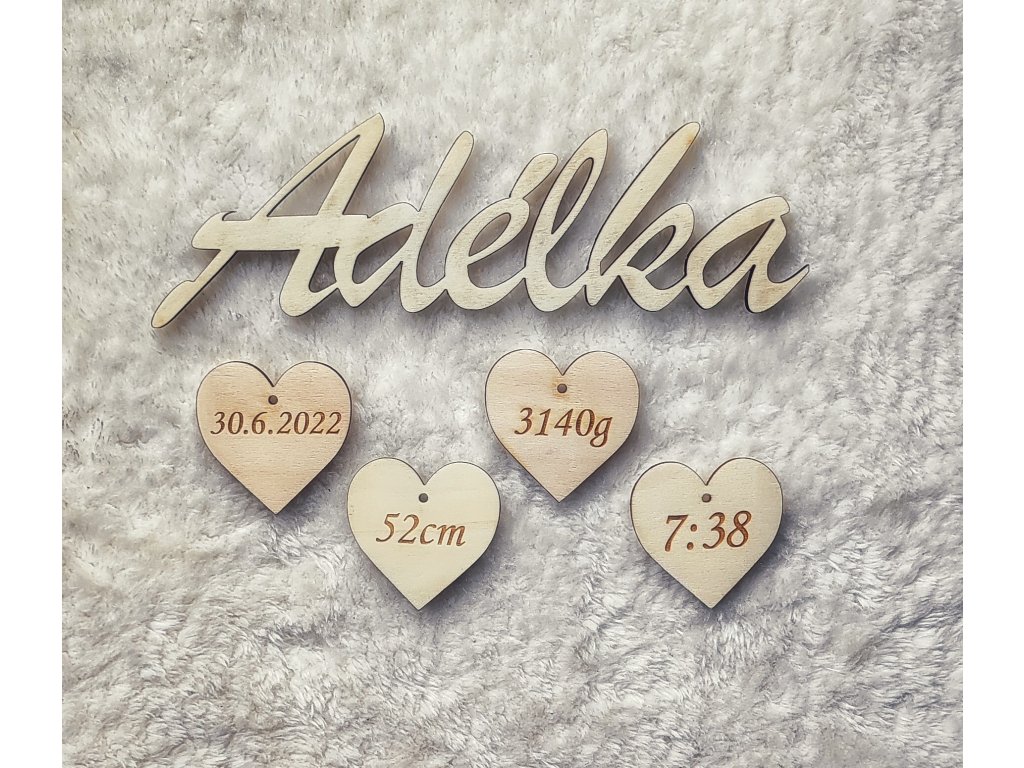 Jednotlivá srdíčka obsahují většinou informace-datum, čas narození, váhu a délku miminka, ale lze na srdíčka vygravírovat téměř cokoli.