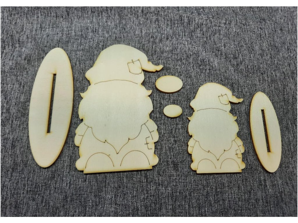 Trpaslík je vyroben z 3mm překližky, bez povrchové úpravy-lze ho dozdobit vhodnými technikami a materiálem (běžně k dostání v papírnictví). Má nalepovací nos.