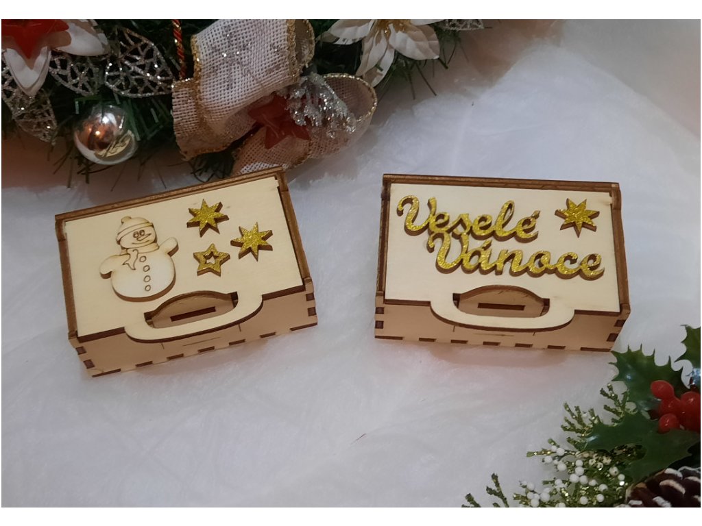 Krabička je vyrobena z 3mm překližky, dekorovaná nápisem a dalšími komponenty.